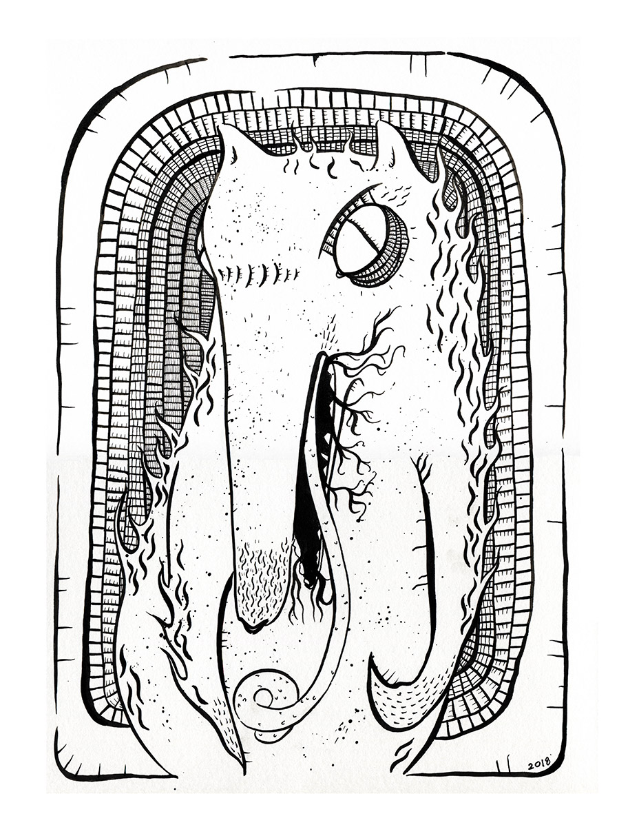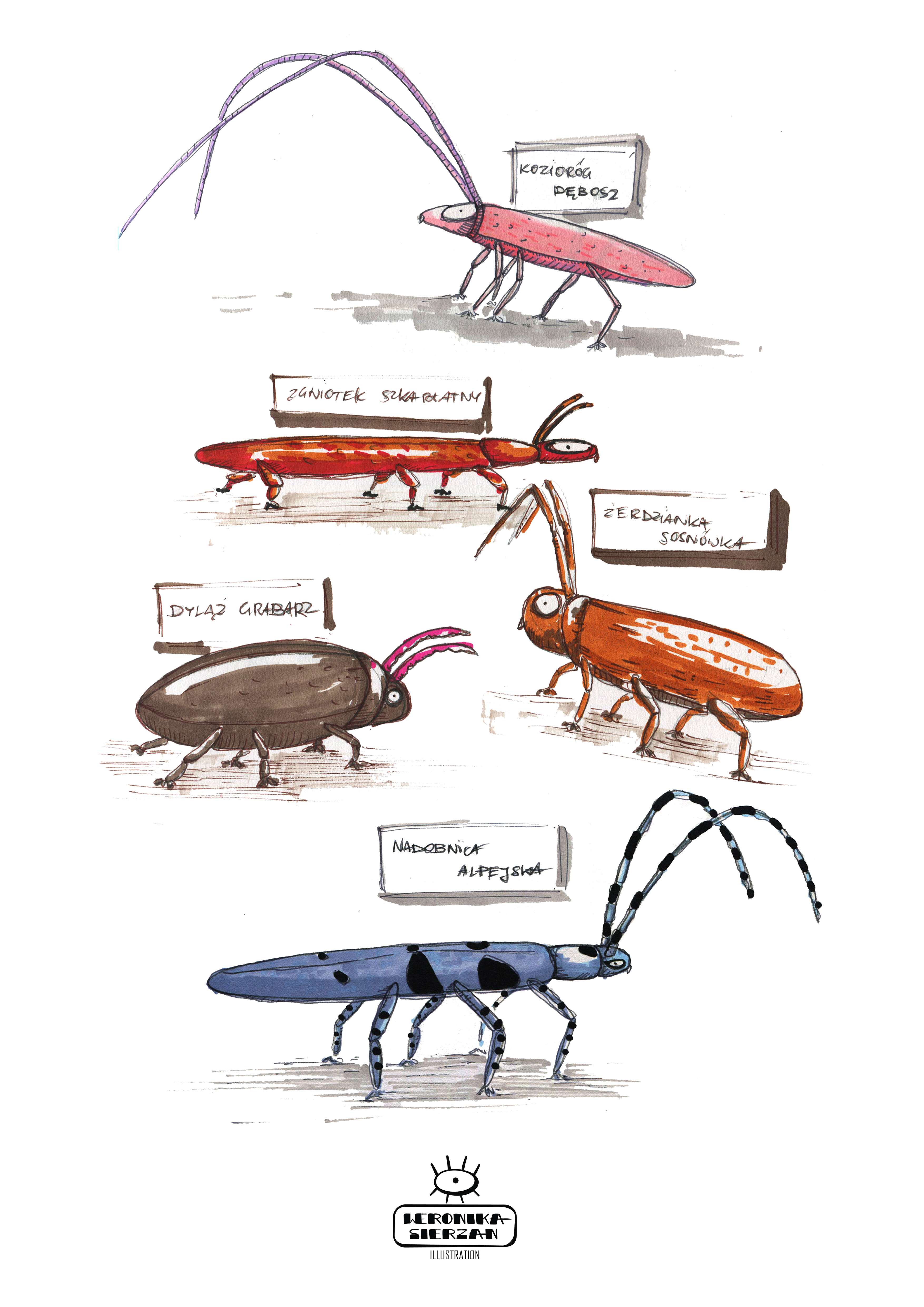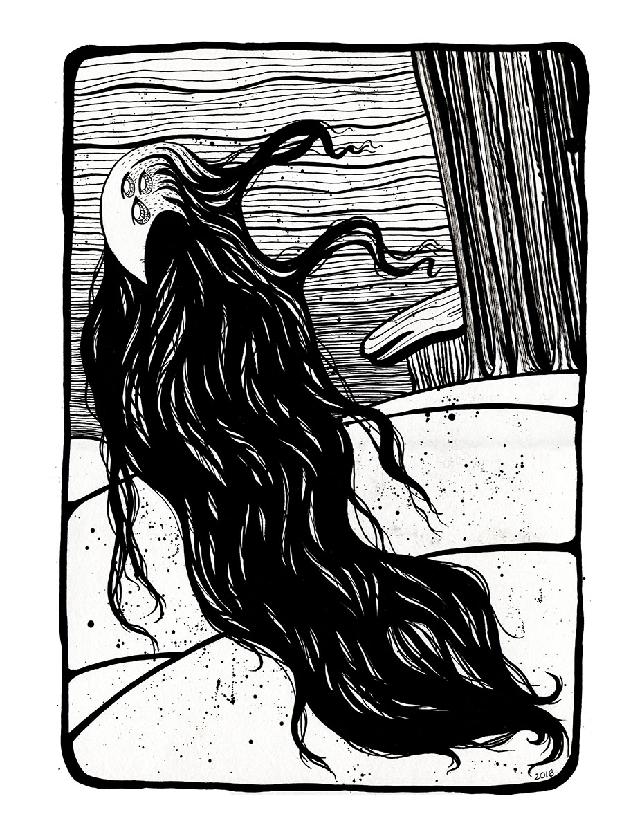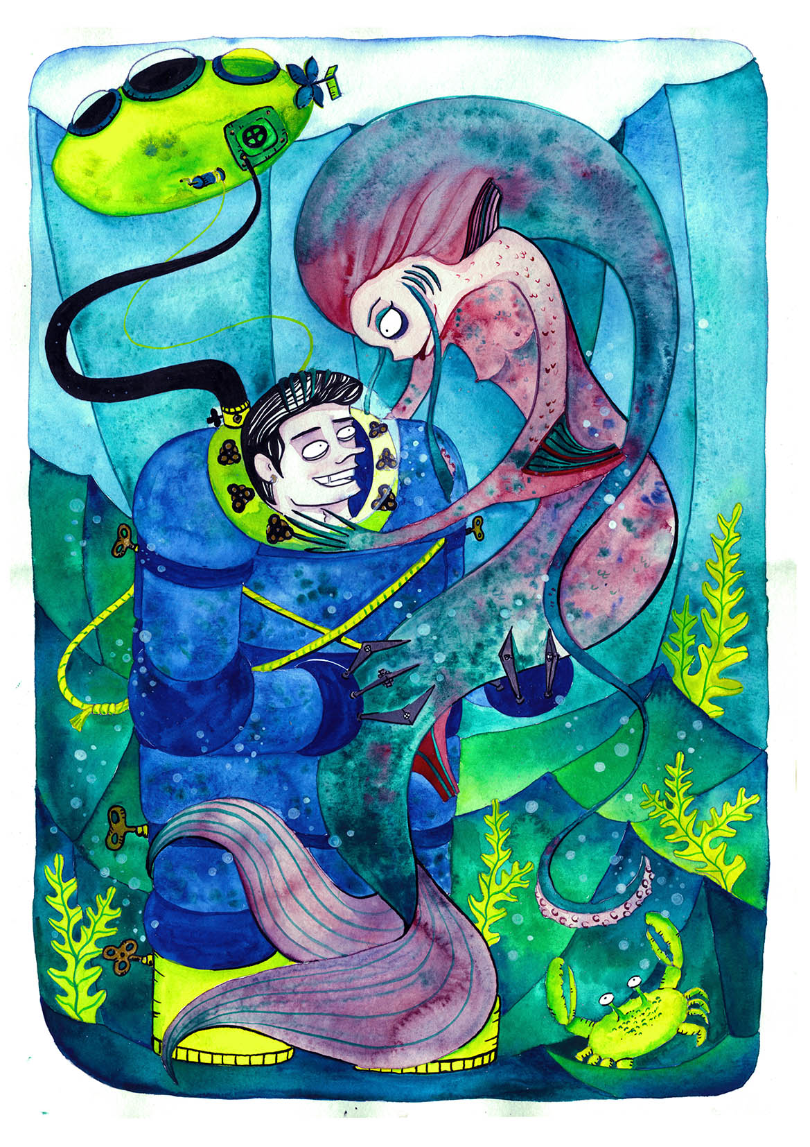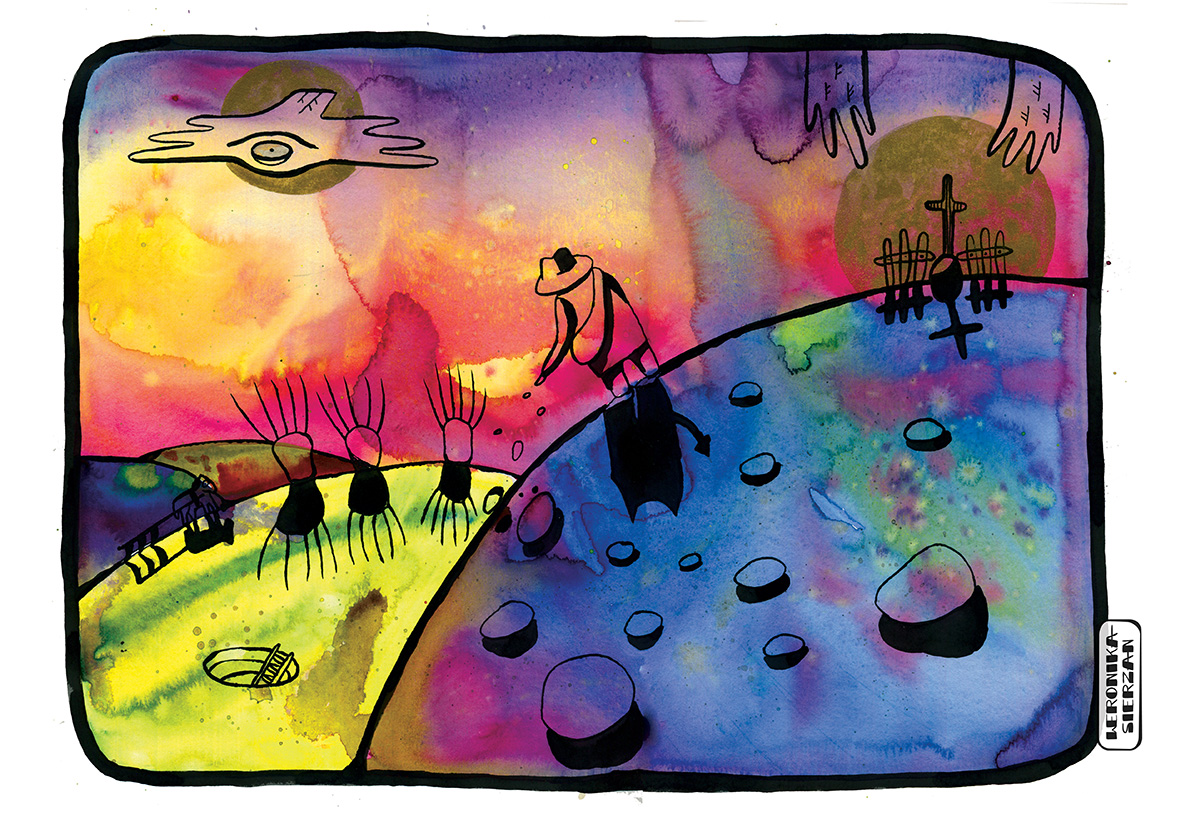 Those pictures are created by different media, but when it comes to traditional tools, I mostly use watercolors and ink. You can also find some acrylic paintings and marker drawings.