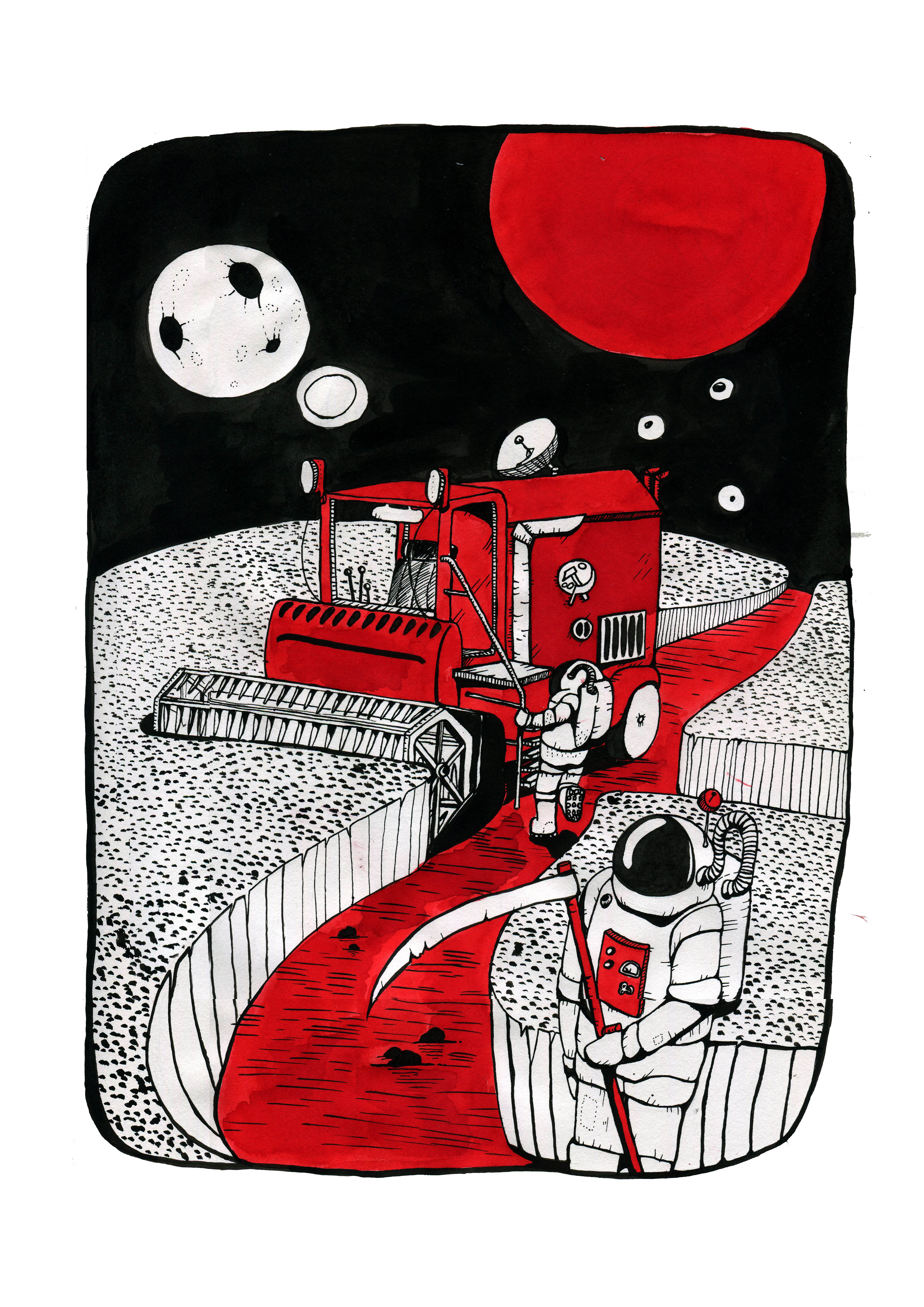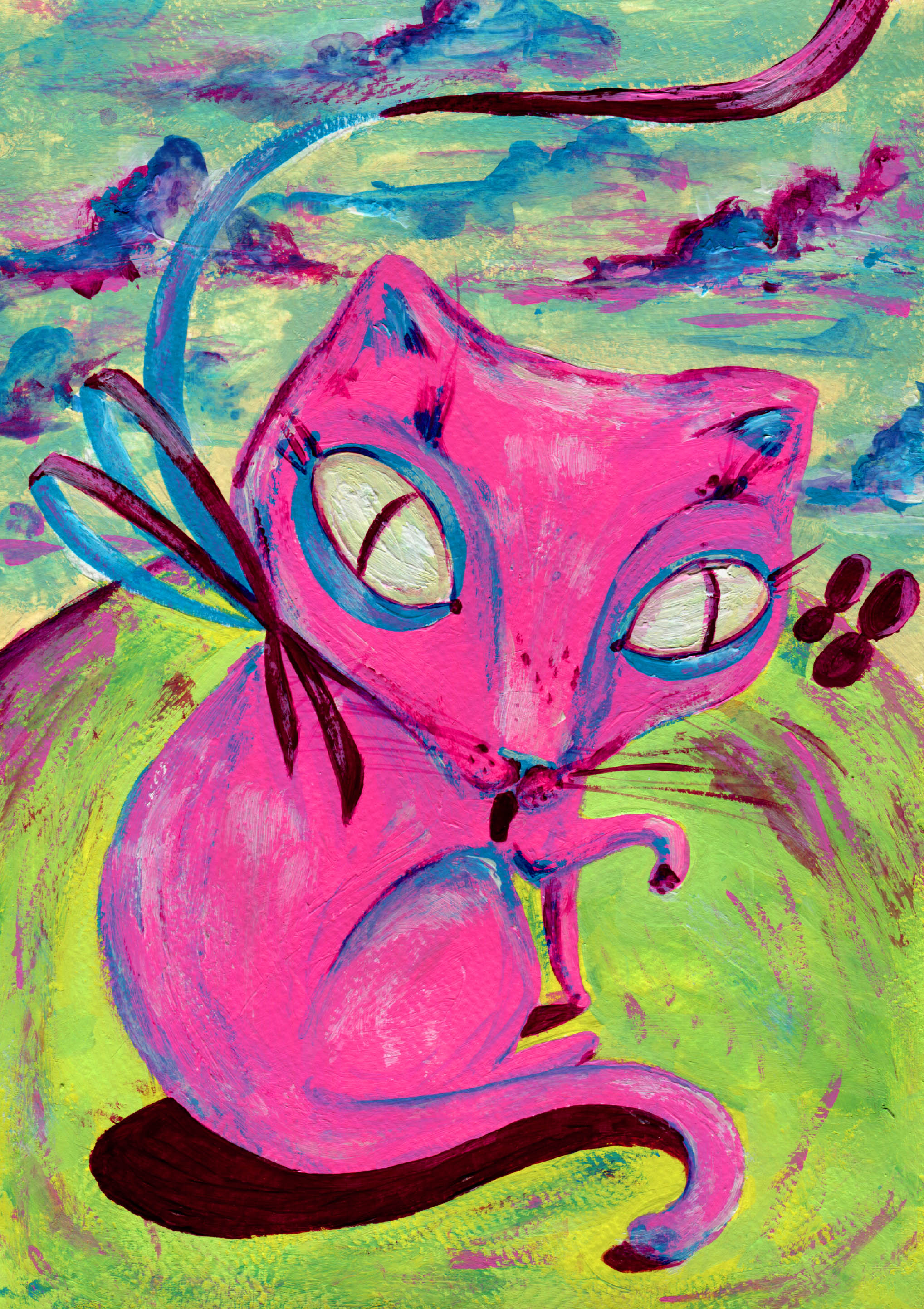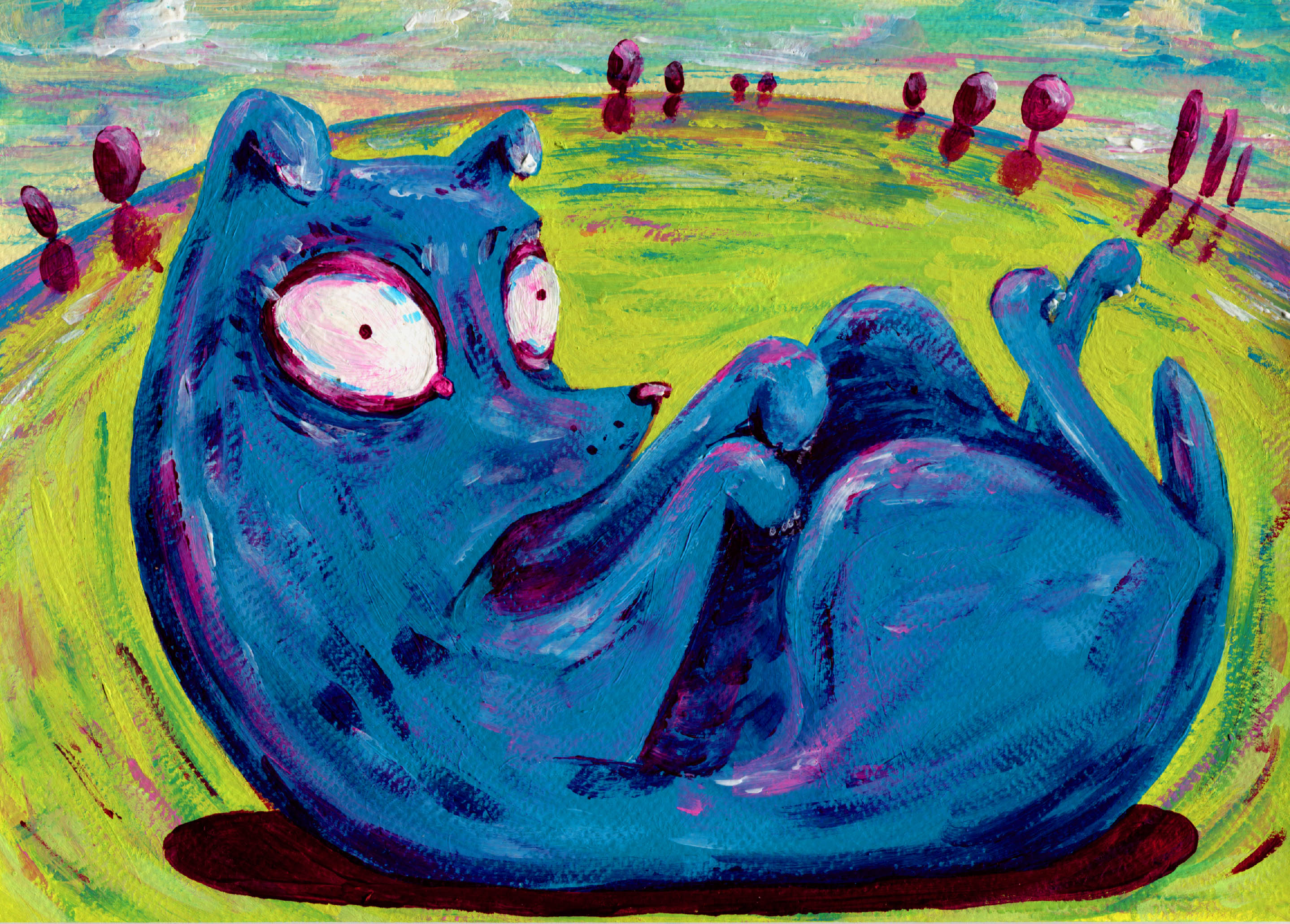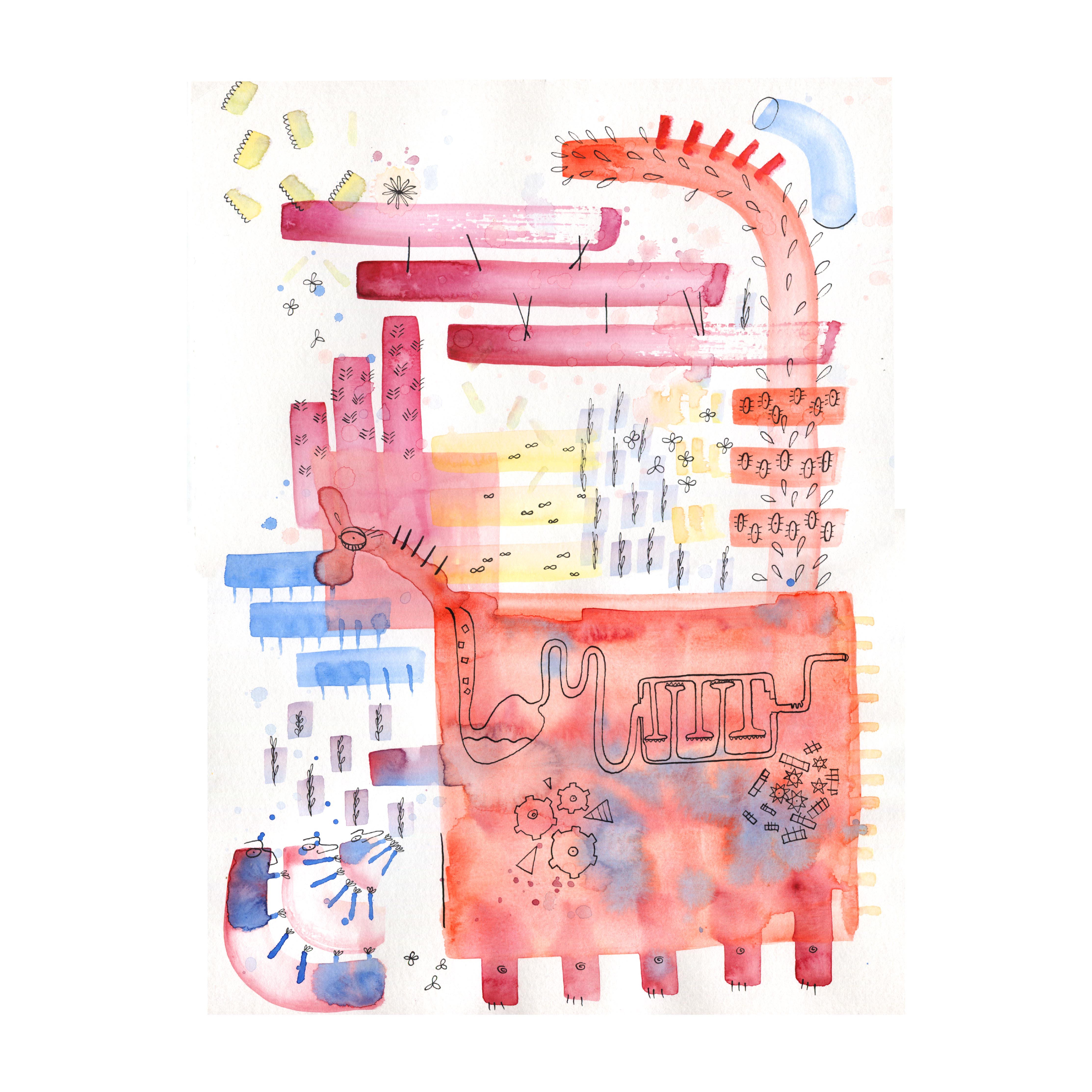 Those pictures are created by different media, but when it comes to traditional tools, I mostly use watercolors and ink. You can also find some acrylic paintings and marker drawings.